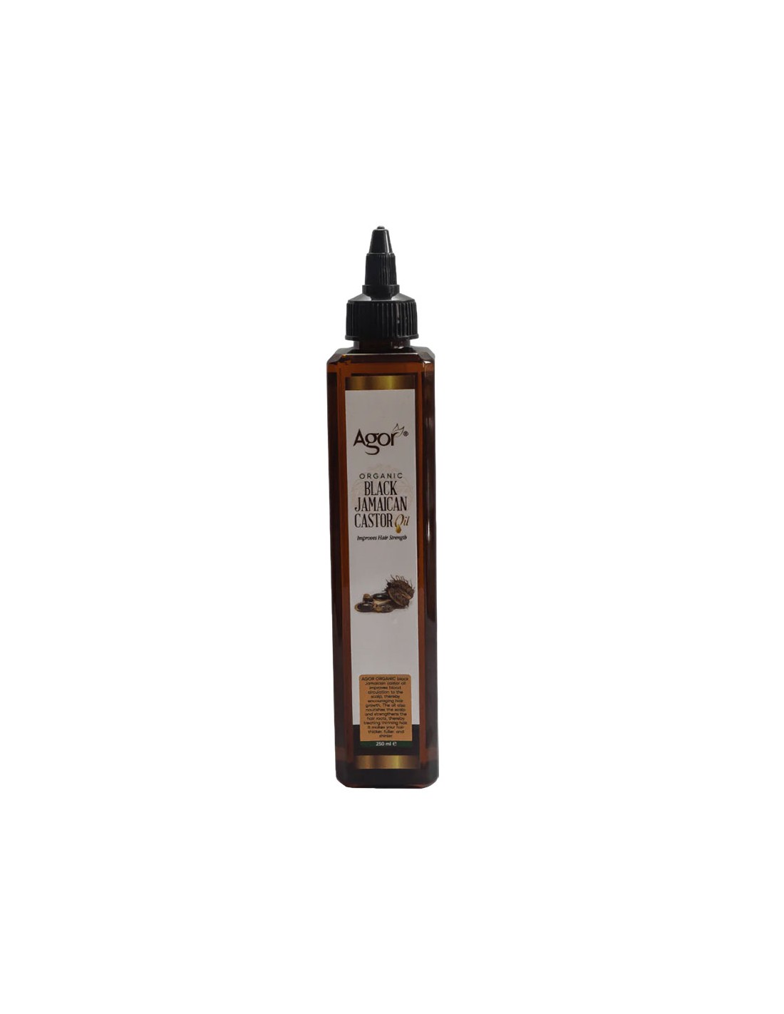Agor Organic black Jamaican castor oil improves blood circulation to the scalp, thereby encouraging hair growth. The oil also nourishes the scalp and strengthens the hair roots, thereby treating thinning hair. It makes your hair thicker, fuller, and shinier.