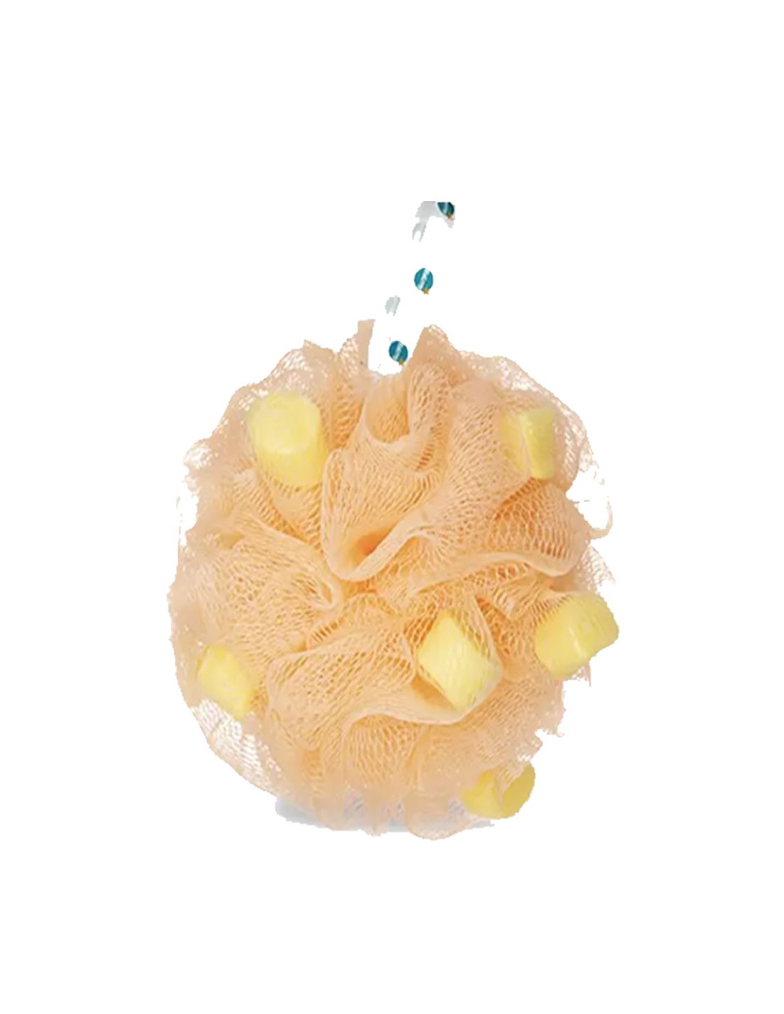 This bath pouf is infused with soap pieces that eliminate the need for additional soap or shower gel. As you use it, it produces a rich lather that cleanses and softens the skin, leaving behind the refreshing scent of mango and pineapple. It's designed for up to 15 uses, depending on usage duration and water temperature.