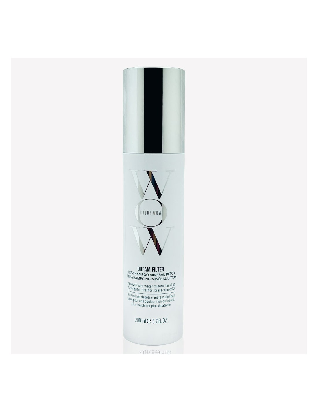 Dream Filter Pre-Shampoo Mineral Detox by Color Wow is a revolutionary pre-shampoo treatment designed to gently but effectively remove the minerals and metals that build up in your hair from hard water and environmental exposure. These impurities can distort your hair color, leave it looking dull or brassy, and diminish the overall health and shine of your hair—especially if you have color-treated or bleached hair.