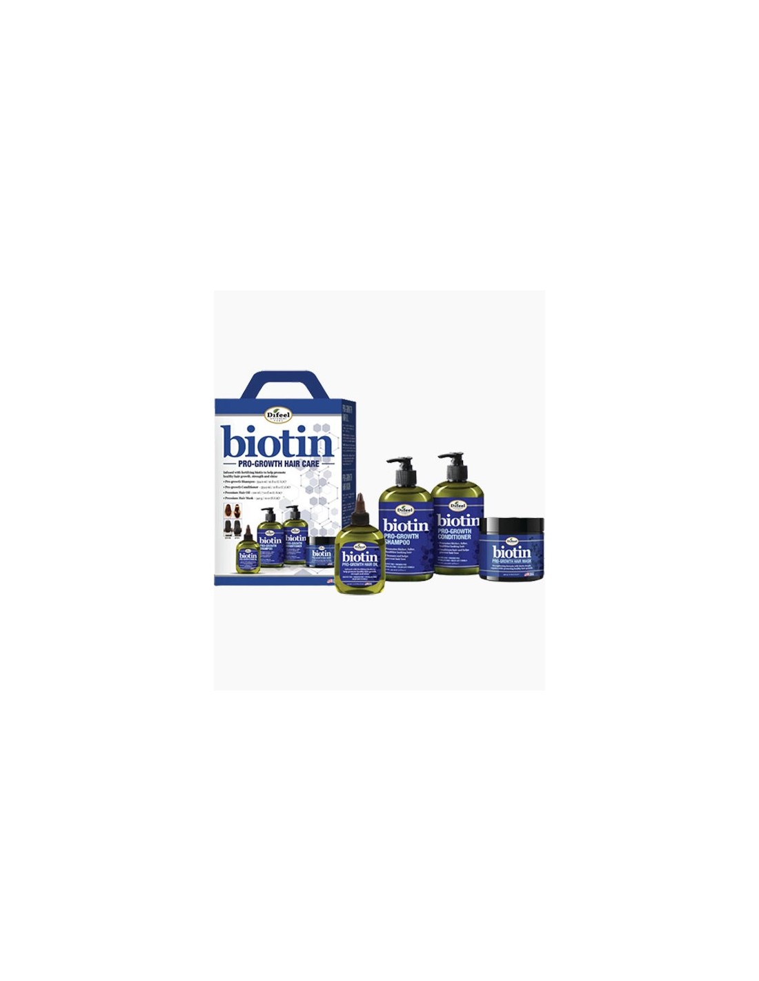 This deluxe Difeel Biotin Pro-Growth hair care set (4) piece hair care collection is infused with nourishing Biotin for hair growth, and includes each of the following.
