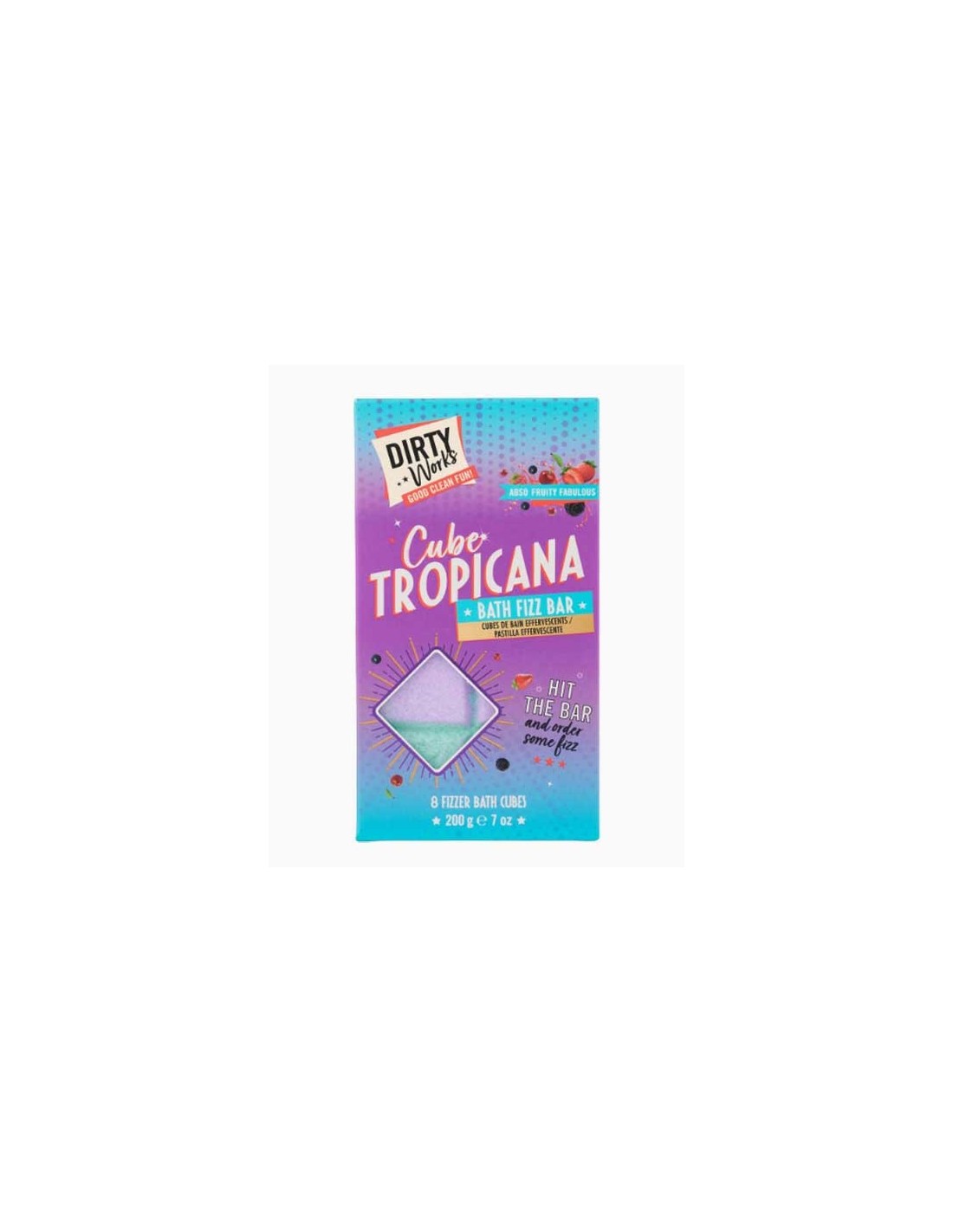 The Dirty Works Cube Tropicana Bath Fizz Bar is a fun and tropical-themed bath product designed to create a luxurious, fizzy bath experience. It comes in the form of a bar made up of smaller cubes, each infused with a refreshing tropical scent. You can break off individual cubes to drop into your bath, releasing fragrant fizz that transforms your bathwater into a relaxing, aromatic oasis.