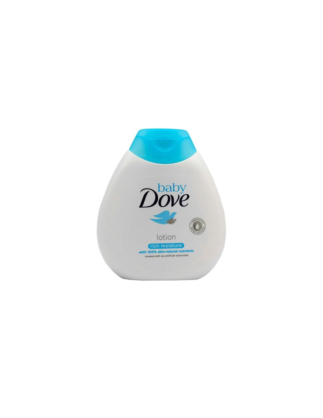 Baby Dove Lotion Rich Moisture. 200ml. Your baby’s skin is beautiful but as a parent, you know that little ones can get dry skin that needs special care. That’s why we created our unique Rich Moisture Baby Lotion. Its formula soothes dry skin from the first use and provides all day moisture that leaves baby skin feeling soft and delicately scented.