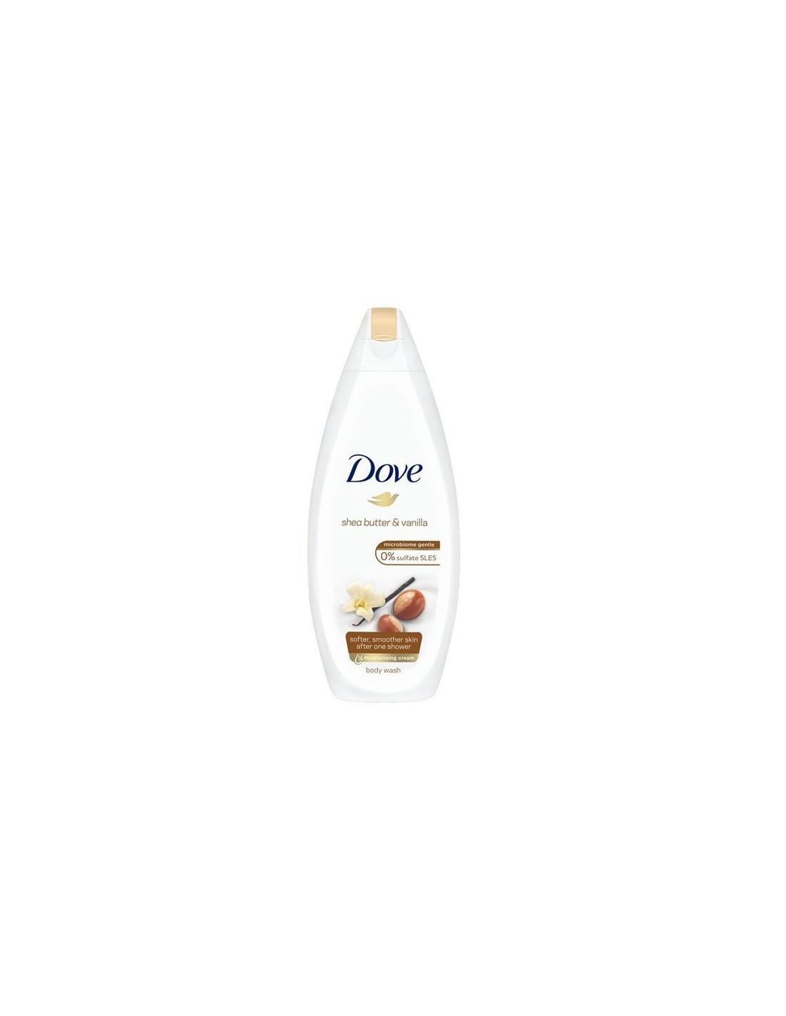 Dove Shea Butter and Vanilla Body wash gives you softer, smoother skin after just one shower, Dove Body wash, made with ¼ moisturising cream, helps to minimise skin dryness, Our Nutrium Moisture technology delivers skin natural nutrients, Our mildest and gentlest formula yet, The moisturising properties within Dove Body wash nourish deep into the surface layers of your skin, Dove Body wash protects your microbiome, the skin’s living protective layer.