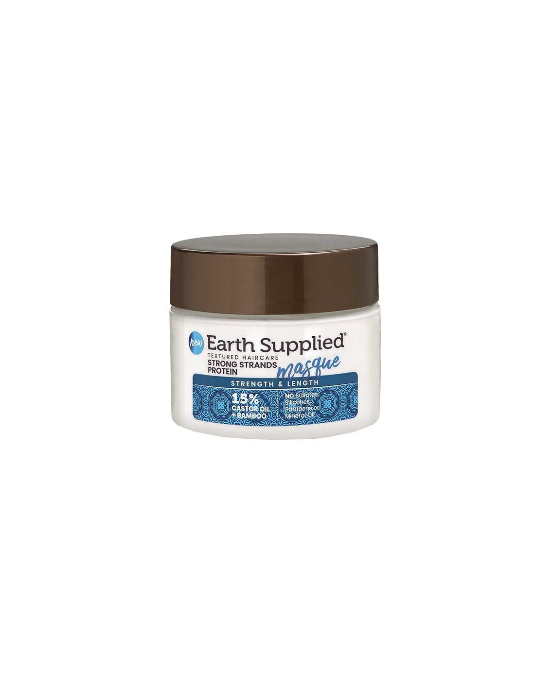 Earth Supplied Strength & Length Strong Strands Protein Masque is made with 15% Castor Oil + Chinese Bamboo to help fortify strands with moisture and improve elasticity so hair can grow long and strong.