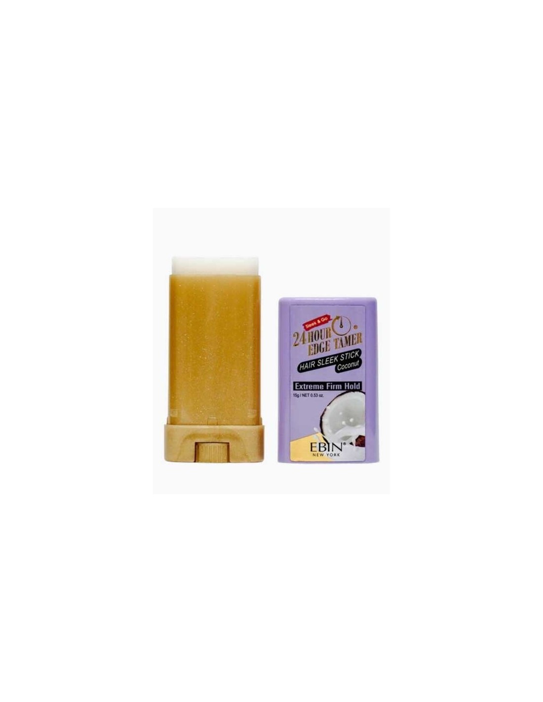 Add both to bagLay and slay with the 24 Hour Edge Tamer Sleek Hair Wax Stick in Coconut . This product offers unrivaled extreme hold for all hair types, including 4C. Keeping you white flake and residue-free, this wax stick is humidity-resistant so your edges and flyaways remain tamed from day to night.