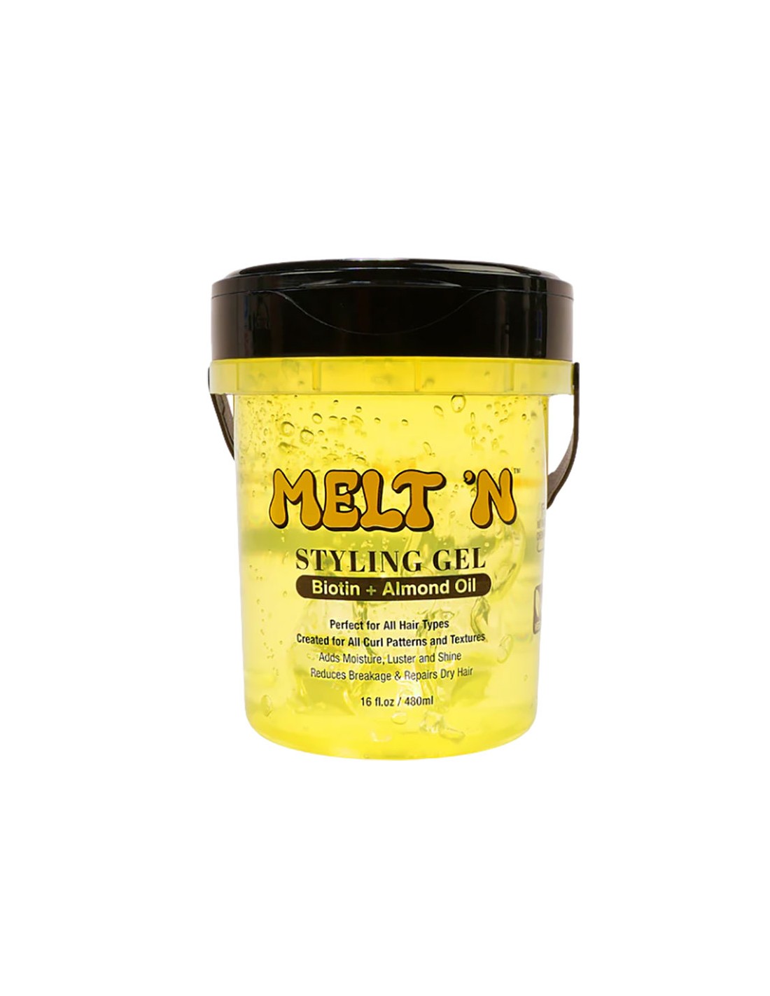 Melt'N Styling Gel boasts a lightweight formula, prioritizing a firm grip and exceptional curl definition without weighing hair down or leaving behind any unwanted residue. Melt'N Styling Gel comes in three distinct variations, each formulated to address specific hair care needs and preferences, Biotin + Almond oil.
