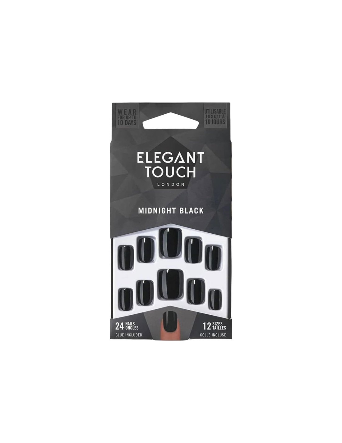 Elegant Touch Black Nails With Glue offer a bold, sophisticated manicure in a timeless black shade. These press-on nails are perfect for those who want a chic and edgy look without the hassle of salon visits.The natural-looking PRE PAINTED MIDNIGHT BLACK are beautiful making it incredibly easy to achieve a flawless finish. 24 nail tips in a pack this large size pack will keep you going even longer.