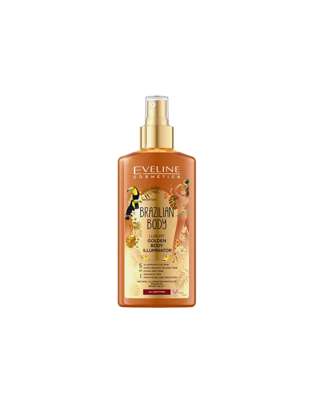 Eveline Brazilian Body Luxury Golden Body Illuminator is a radiant body care product designed to give your skin a luminous, sun-kissed glow. Infused with golden pearl particles and nourishing ingredients, it enhances your skin’s natural beauty while providing hydration and a silky finish. Perfect for special occasions or everyday use, this lightweight illuminator leaves the skin looking radiant, smooth, and irresistibly glamorous.