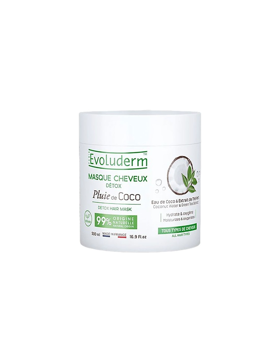 Evoluderm Detox Coco Green Tea Hair Mask is a luxurious deep-conditioning treatment designed to detoxify and rejuvenate hair. Enriched with the power of coconut oil and green tea extract, this mask works to purify the hair and scalp, eliminating impurities and environmental pollutants. The coconut oil provides deep hydration, while the green tea extract, rich in antioxidants, helps to protect and strengthen hair. This mask is ideal for anyone looking to restore vitality and moisture to dull, stressed, or polluted hair. With its nourishing formula, it leaves hair feeling soft, smooth, and revitalized, giving it a healthy shine and renewed strength.