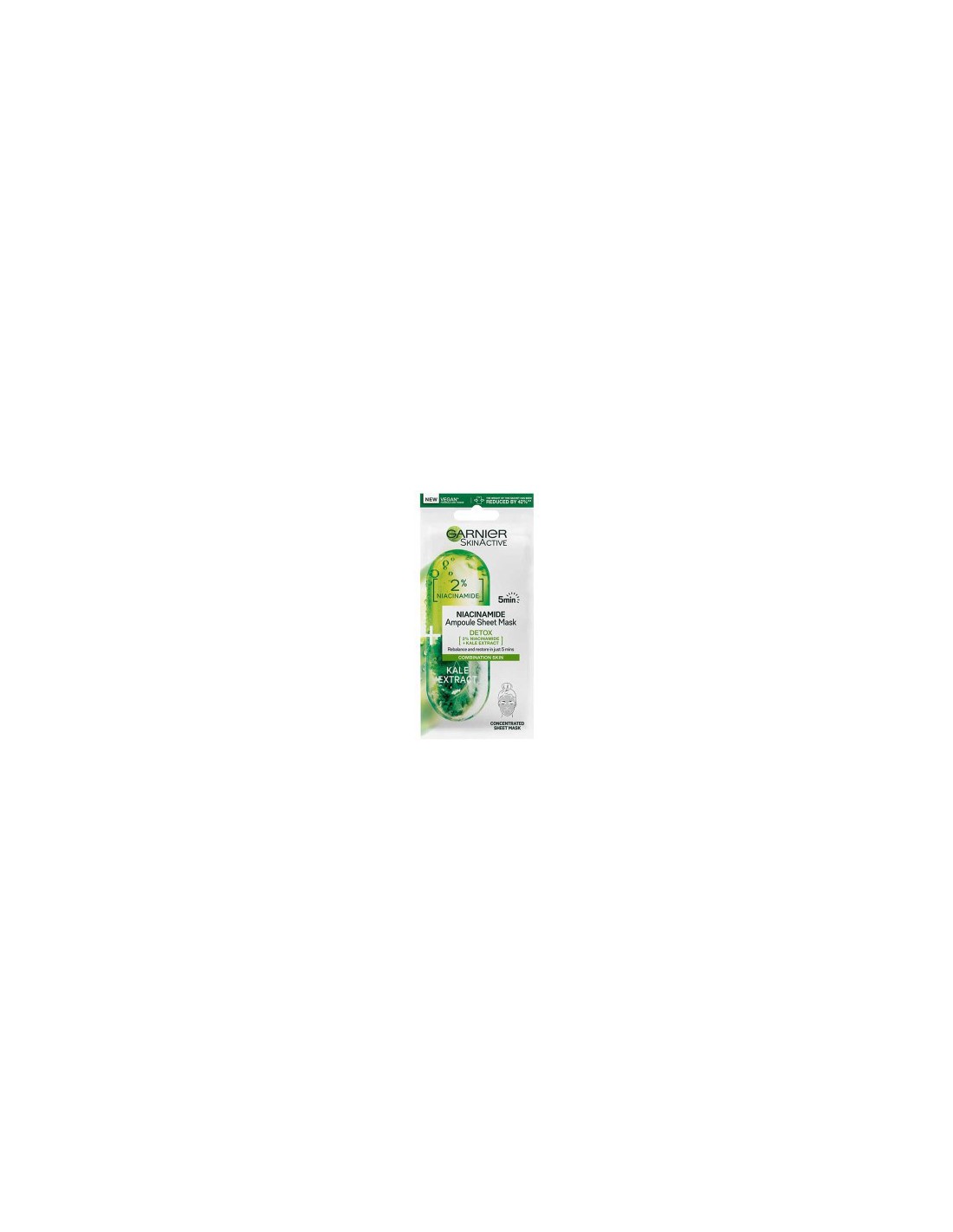 Skin Active Niacinamide Ampoule Sheet Mask a super rebalancing and hydrating sheet mask for combination.The sheet Mask to intensely rehydrate skin, reduce the look of fine lines, tired & dull skin and revive radiance for glowing skin.This fast action sheet mask combines a potent derm active with a natural origin ingredient for a hydrating detox that rebalances dry and oily areas in just 5 mins. Niacinamide helps to visibly re-balanced skin and is known to target excess sebum and blemishes. Kale is packed with vitamins and antioxidants. Proven effectiveness in 5 min. Skin looks re-balanced with a hydrated and healthy glow. Consumer test, 72 women, after 1 application. Best to use: When skin needs rebalancing and a revitalising hydration hit. Our Commitments: Vegan formula and tissue. The weight of this sachet has been reduced by 42%. This sheet mask is pre-dosed with a hydrating ampoule. No physical ampoule is contained in the pack. Vegan: No animal derived ingredients of by-products. Enriched with 2% niacinamide and kale extract, Unmask re-balanced looking skin that glows in just 5 minutes, Re-balances and restores in just 5 minutes, Suitable for combination skin.