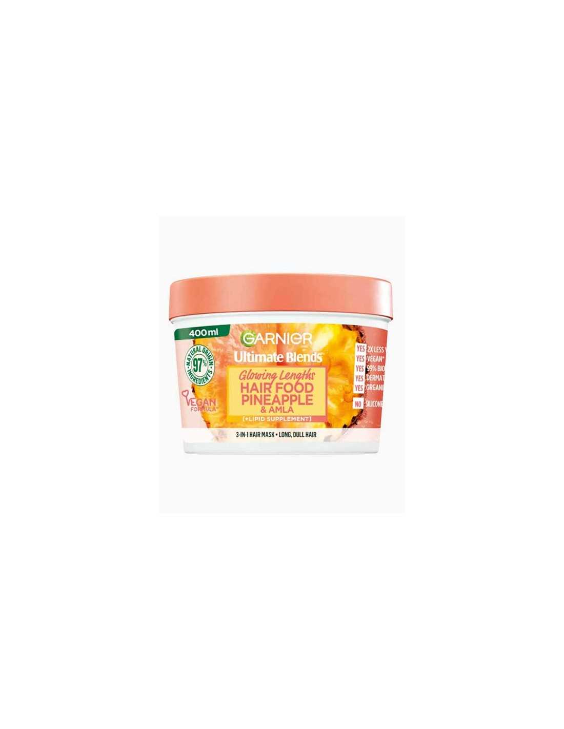 Garnier Ultimate Blends Glowing Lengths Pineapple and Amla Hair Food 3-in-1 Hair Mask Treatment, designed to nourish and hydrate dull, dry hair types.