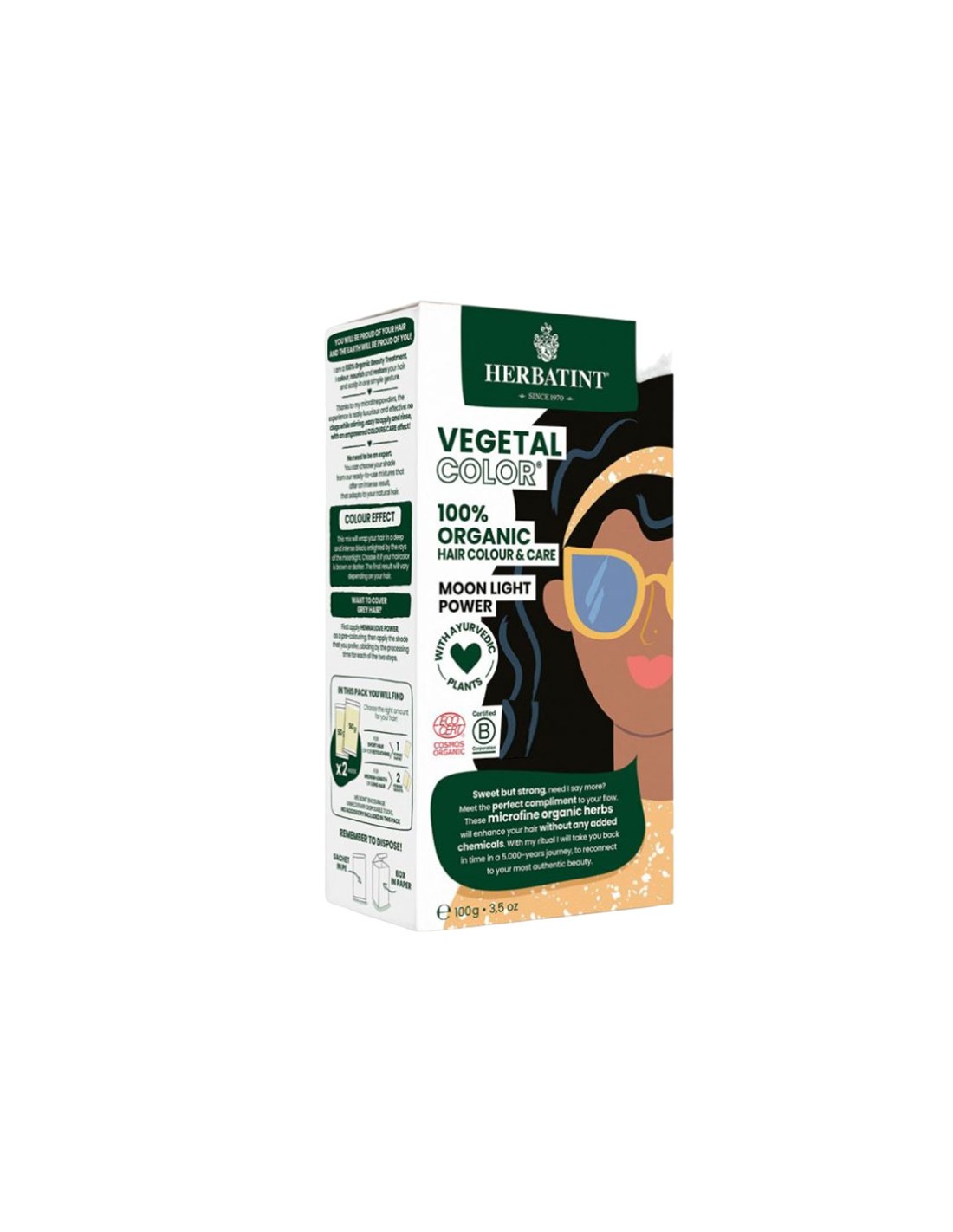 Herbatint Vegetal Color Bio 100g - Hair Colour: Moon Light Power is a 100% Organic and vegetal colouring care with Ayurvedic plants. This ritual colours, nourishes and regenerates hair and scalp in a single gesture. Thanks to its very fine powders, your experience will be comfortable and effective: no lumps, easy to apply and rinse off, a reinforced colour and care effect!These microfine powders of organic plants will strengthen your hair without any undesirable ingredients.