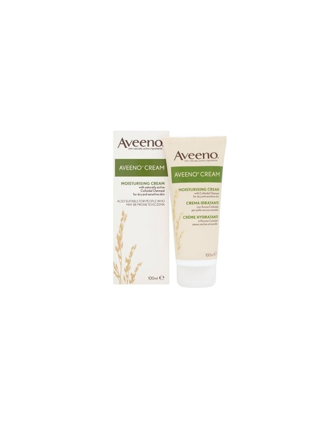 Johnson and Johnson, Aveeno Cream with Natural colloidal oatmeal , Also suitable for people who may be prone to eczema. Aveeno Cream is formulated with natural Colloidal Oatmeal to actively moisturise dry and sensitive skin. Regular use helps prevent dryness and irritation caused by skin dehydration.