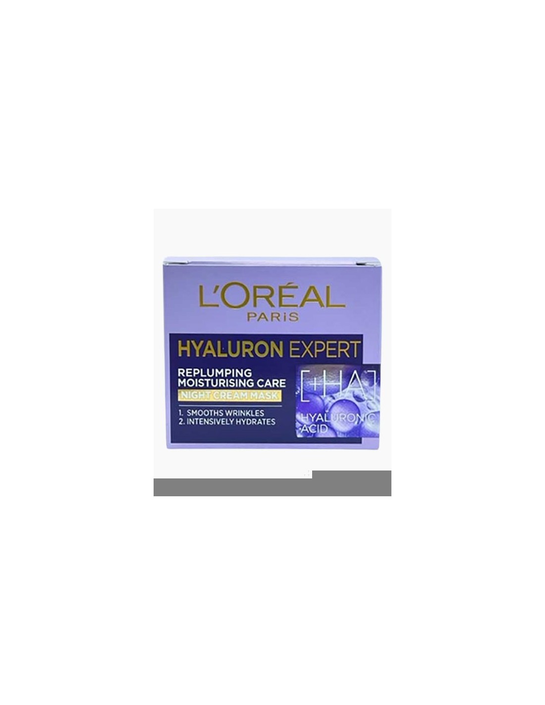 Loreal Hyaluron Expert Replumping Moisturising Night Cream Mask, Hyaluronic acid is a powerful dermatological active known for its replumping properties in anti-ageing skincare. It has created Hyaluron Expert Replumping Moisturising Night Cream Mask powdered by 2 types of hyaluronic acid for replumped younger looking skin.
