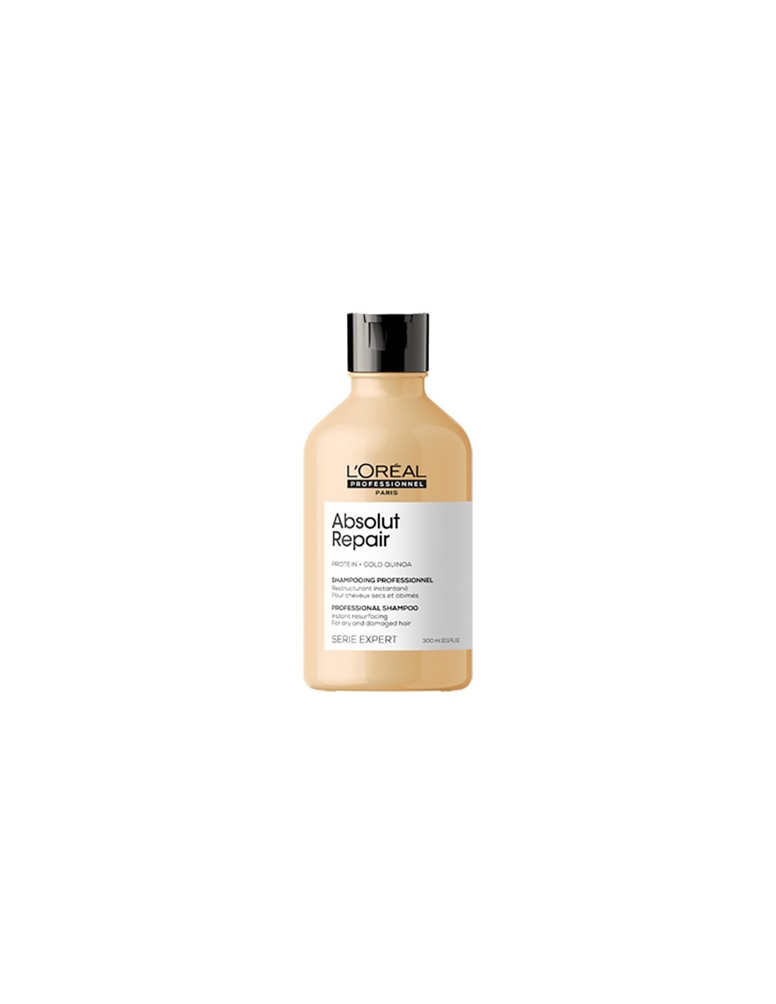 Add both to bagL'Oreal Professionnel Serie Expert Absolut Repair Protein + Gold Quinoa Instant Resurfacing Shampoo is a lightweight, restructuring shampoo with a gentle formula for use on damaged hair.