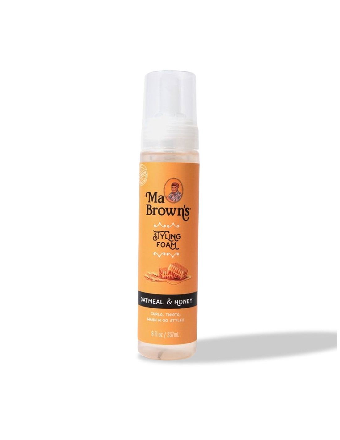 Ma Brown's Oatmeal & Honey enriched Styling foam is lightweight and helps keep your curls, coils free flowing. Every so often there would be that special day when our amazing Ma Brown’s who had a passion for making her own hair remedies would allow us to keep our hair out, let it loose she would say, and that's when Ma Brown’s Styling foam whipped with oatmeal and Honey would help keep our African textured hair curly, moisturized and free flowing the Ma Brown Way! Enriched with coconut oil to help control breakage and frizz.