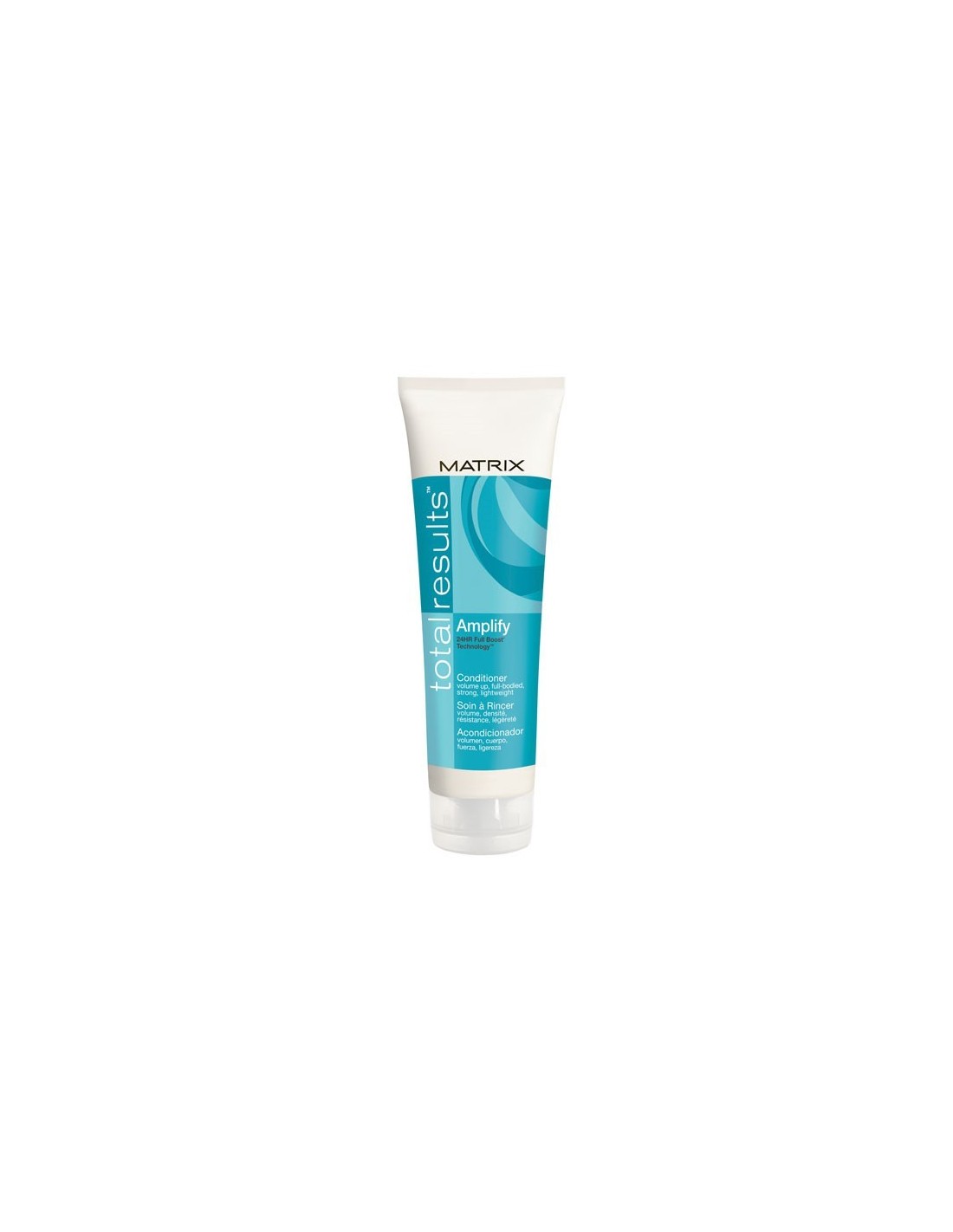 Matrix Total Results Amplify Conditioner, volume up, full-bodied, strong, lightweight. Continuous lift for lightweight volume & shine. Removes tangles and static.