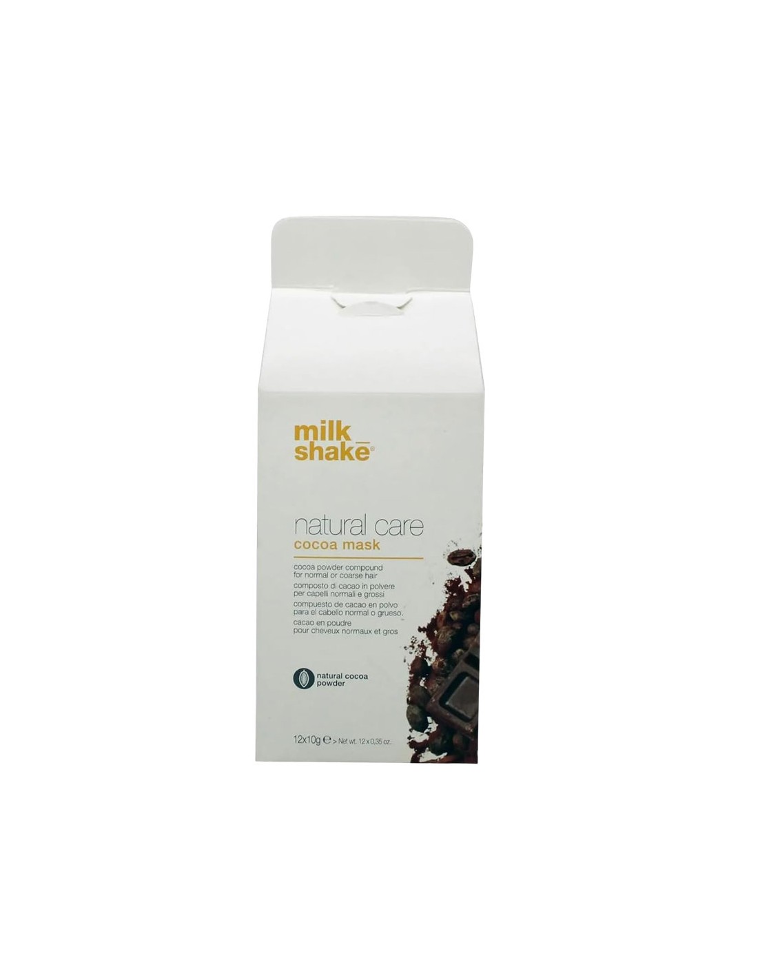 Natural Care Cocoa Mask,milk shake natural care cocoa mask treatment is specific for normal or coarse hair. The deep regenerating and nourishing power of cocoa is completed by mixing milk shake natural care cocoa mask with the milk_shake natural care restructuring base, giving a long lasting result. The milk_shake natural care cocoa mask treatment performs on inner and outer hair structure, restoring hair for a vibrant, healthy-looking result. The butter and minerals from cocoa nourish hair, giving it strength and body.