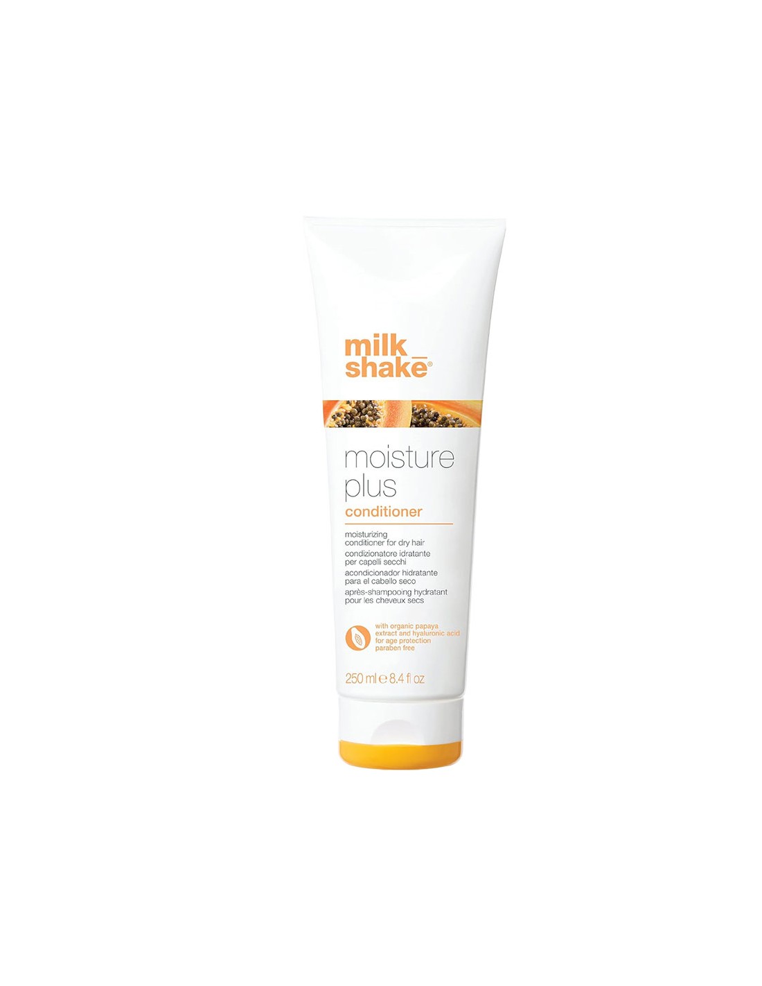 A moisturizing conditioner for dry hair.Gives softness and manageability to dry hair, maintaining the hair’s optimal moisture balance. Milk shake Moisture Plus Conditioner contains organic papaya extract, Integrity 41 and hyaluronic acid with an anti-ageing action as well as protecting hair color.