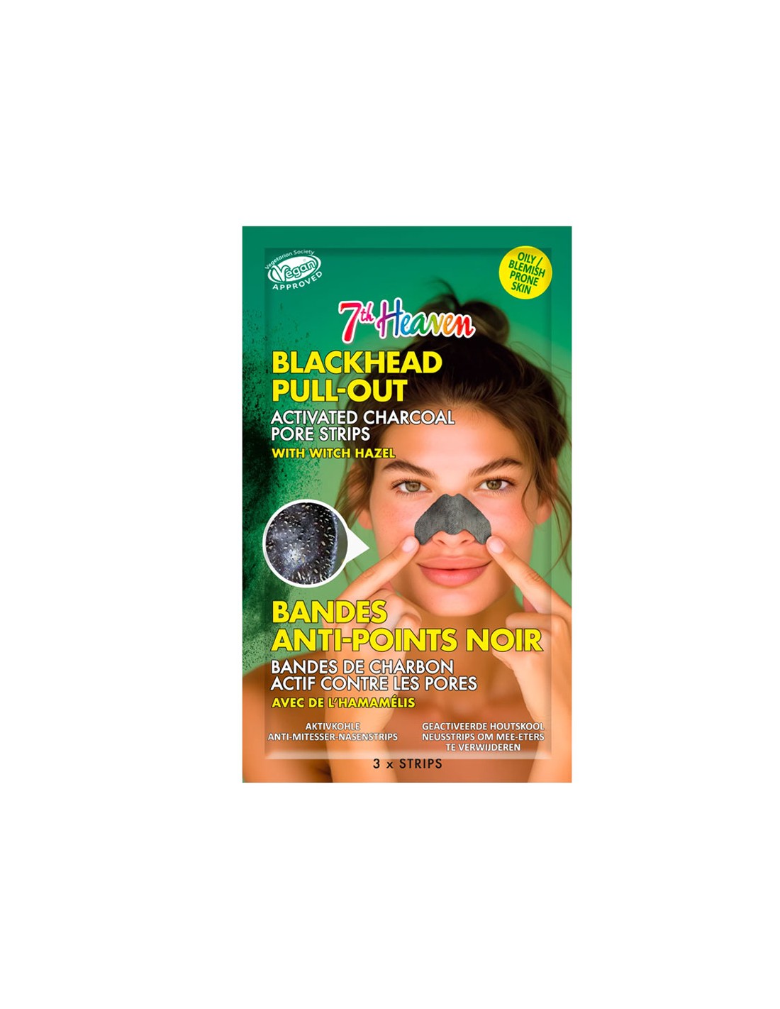 7th Heaven Blackhead Pull Out Charcoal Pore Strips are designed to target and remove blackheads, impurities, and excess oil from the skin, especially in the nose, forehead, and chin areas, commonly referred to as the T-zone. These pore strips use the purifying power of activated charcoal to deeply cleanse the pores, leaving your skin feeling fresh and smooth.Formulated with Activated Charcoal to unclog pores, clear dead skin cells and pull out blackheads. Witch Hazel helps calm and soothe redness. Use regularly, for visibly smaller pores.