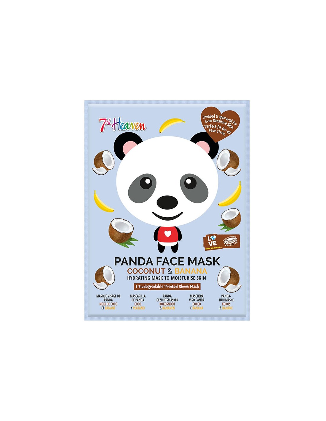 7th Heaven Coconut & Banana Panda Face Mask is a fun and nourishing treatment for your skin that combines the tropical benefits of coconut and banana. This mask is designed to hydrate, nourish, and revitalize your skin while providing a relaxing experience. With its adorable panda-themed packaging, it brings a playful touch to your skincare routine.Hydrate and soothe your skin with coconut and banana infused panda sheet mask. Get great self I es and memorable parties and sleepovers. Cruelty free - we love animals for over 3 years 7th Heaven (Montagne jeunesse) has stood against animal testing and as a founding cicaw member are proud that all products are cruelty free accredited. Natural and naturally derived plant extracts. Contents can cause happiness.