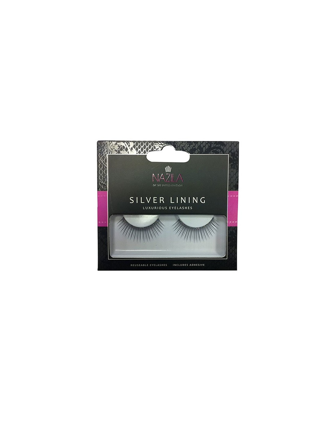 Silver Lining Eyelashes by Nazila Love Glamour makes your eyes pop with its long natural look. These medium length fabulous lashes are perfect for a night on the town. They are long, sparkly and will make your eyes look beautiful.