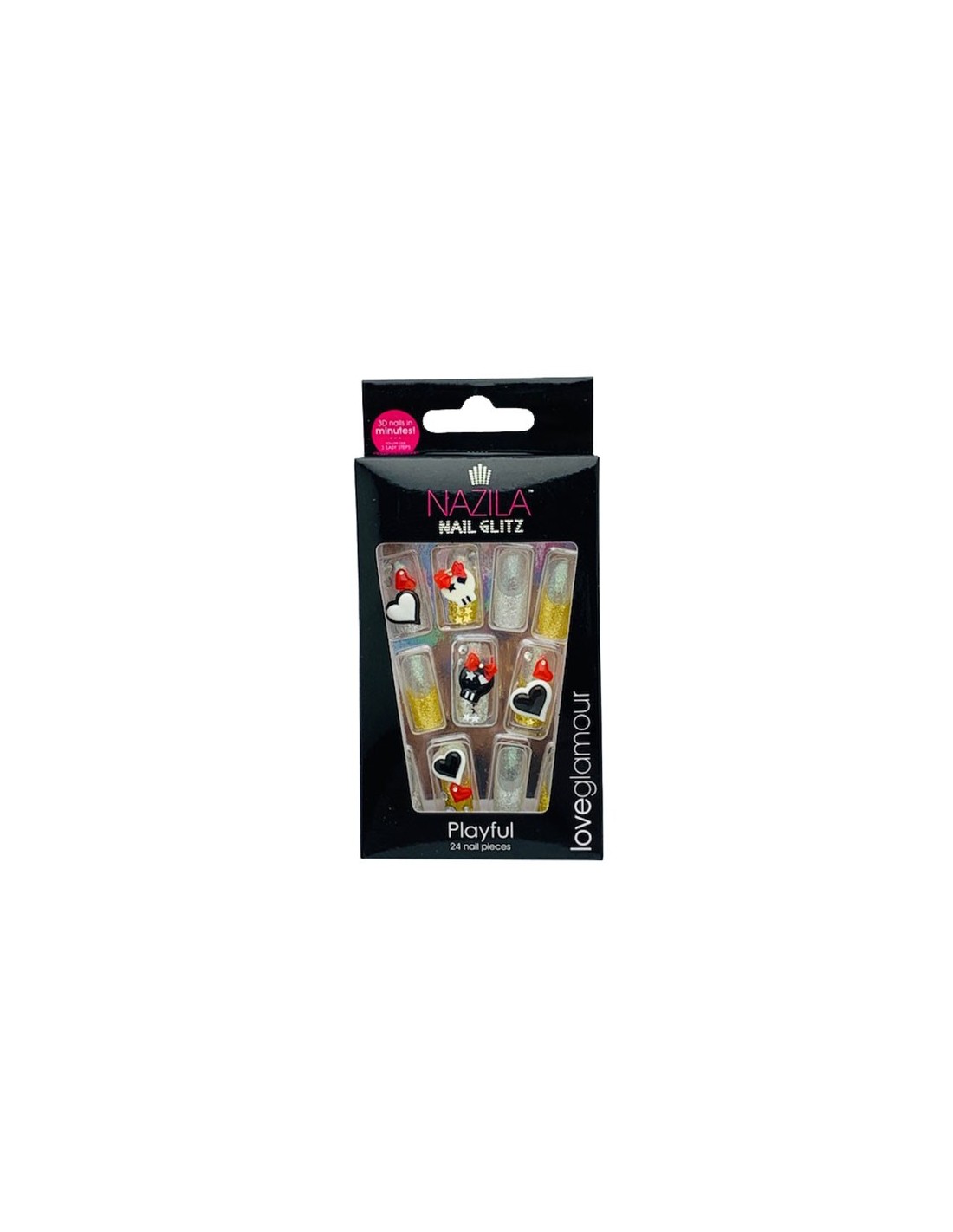 Nazila love glamour introduces ‘nail glitz’,a unique collection of highly embellished false nails offering a fabulous and creative look in minutes. Perfect for christmas parties, other occasions. Each pack contains 24 nail pieces which can be mixed and can be used up to 4 times with the enclosed sticky tabs, or use professional nail glue for longer wear.