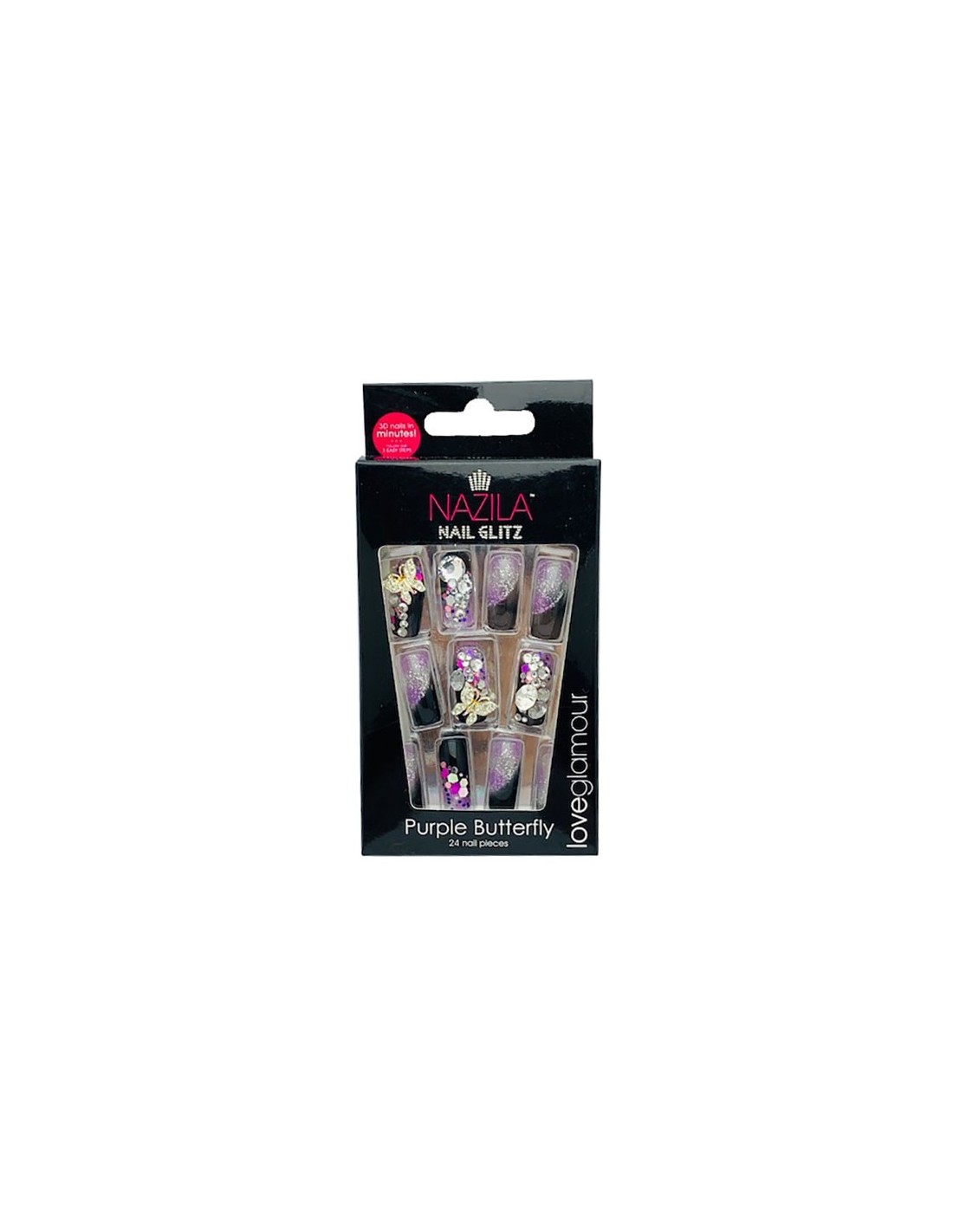 Nail Glitz Love Glamour Purple Butterfly 24 Nails