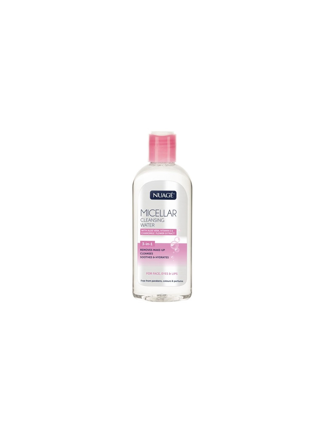 Nuage 3 in 1 Micellar Cleansing Water , Remove makeup, cleanse, and hydrate your skin in one easy step with this Nuage Micellar Cleansing Water. This gentle solution features soothing Aloe Vera, Vitamin E and Chamomile Flower Extract to provide you with refreshed, oil and dirt-free skin. Simply soak a cotton pad in the cleansing liquid and wipe all over your face with no need to rinse! This solution is paraben and perfume free