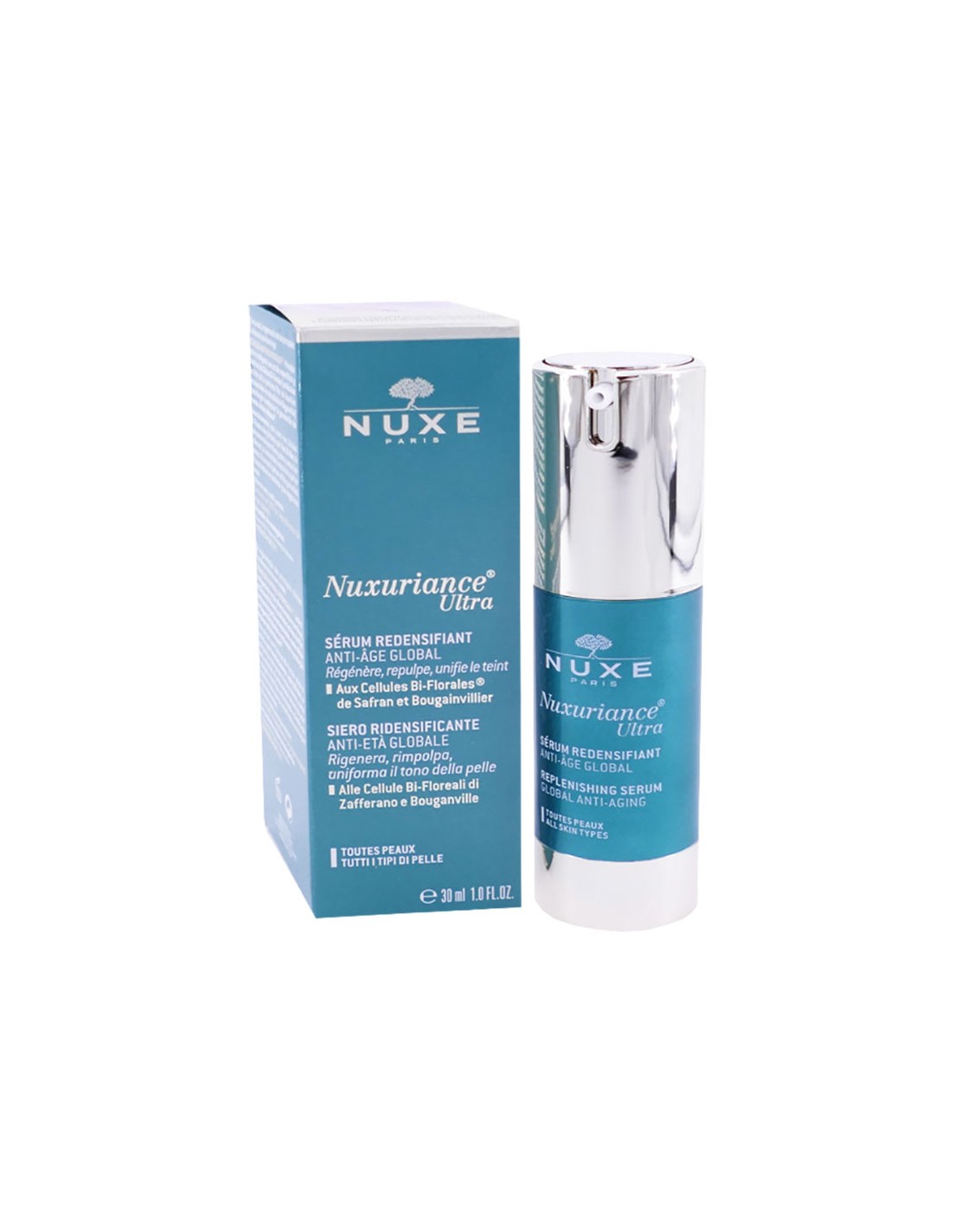 Nuxe Nuxuriance Ultra Global Anti-Aging Serum is a luxurious, powerful treatment designed to address visible signs of aging. Formulated with natural botanicals, including saffron and bougainvillea bi-floral cells, this serum targets wrinkles, loss of firmness, and skin density to reveal a more youthful and radiant complexion.Achieve youthful looking and radiant skin with this anti-ageing serum from Nuxe .Infused with saffron and bougainvillea bi floral cells designed to regenerate and firm the skin.