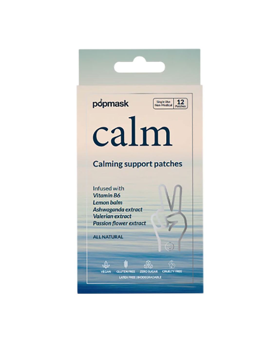 Pop Mask Calm Calming Support Patches provide soothing relief, promoting relaxation and well-being. Easy to use, discreet, and perfect for stress relief on the go. Each patch is infused with soothing ingredients like Vitamin B6, Lemon Balm, Ashwagandha Extract, Valerian Extract, and Passion Flower Extract, all working together to promote relaxation and ease tension.