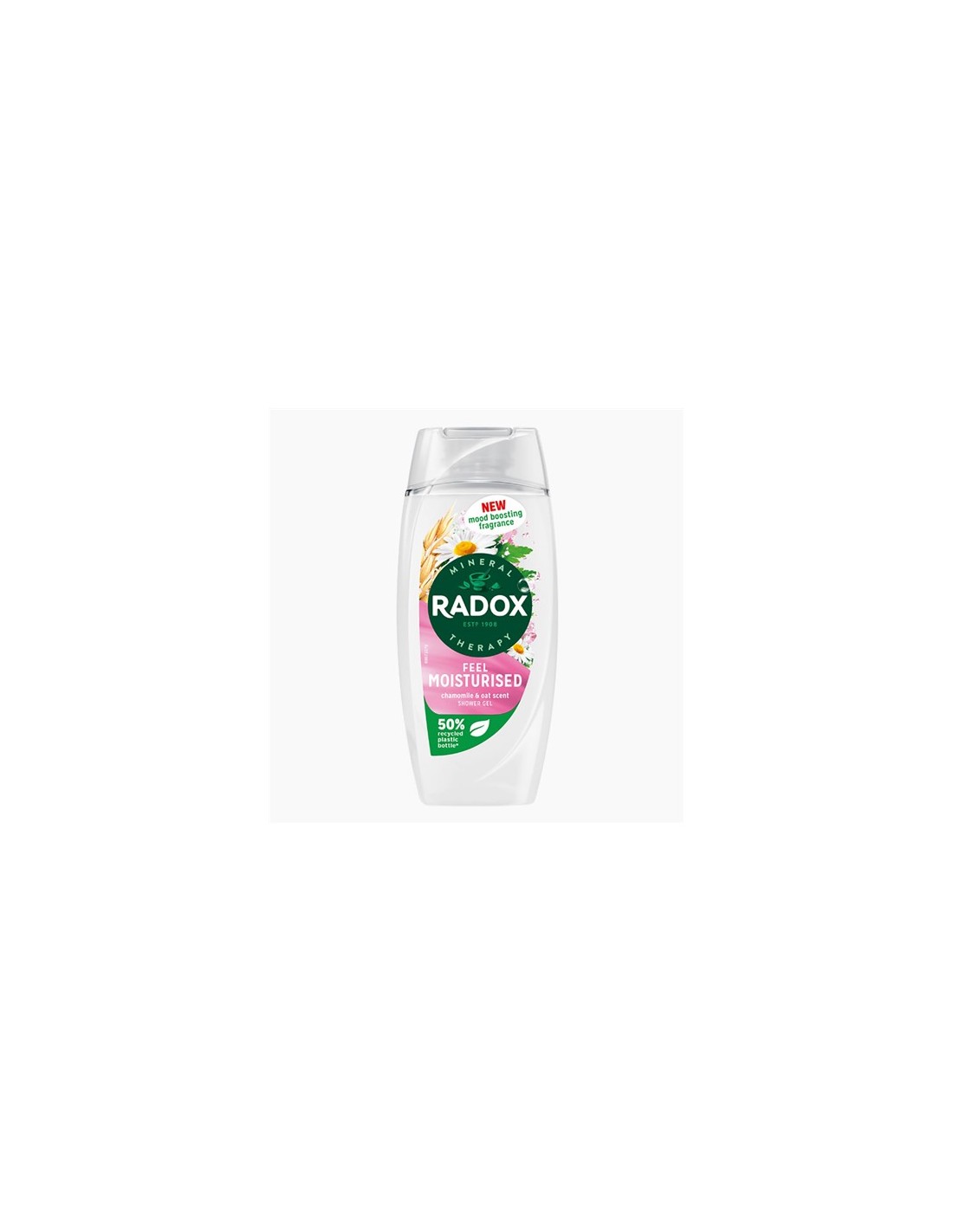 The Radox Feel Moisturised Mineral Therapy Shower Gel cleanses your skin and recharges your batteries with its mood-boosting fragrance. It goes beyond cleansing the body and awakens your senses with the blissful scent of chamomile with the subtle sweetness of oats to help you unwind in a soothing shower experience.This invigorating skin cleanser features a unique blend of four minerals and 13 herbs, which activates with hot water to transform your shower into a mineral therapy ritual. Suitable for daily use, the body wash rinses off easily, leaving your skin feeling fresh and clean.From as early as 1908, RADOX founders used a unique blend of minerals and herbs to ease the fatigue of weary bodies and minds. From reviving the tired feet of early travellers to helping hardworking people find a moment of solitude and sanctuary – RADOX is rooted in the transformative power of mineral therapy. We have a long history of everyday therapy, we call it your daily R&R, RADOX Mineral Therapy. Enjoy our Feel Moisturised chamomile Shower Gel.