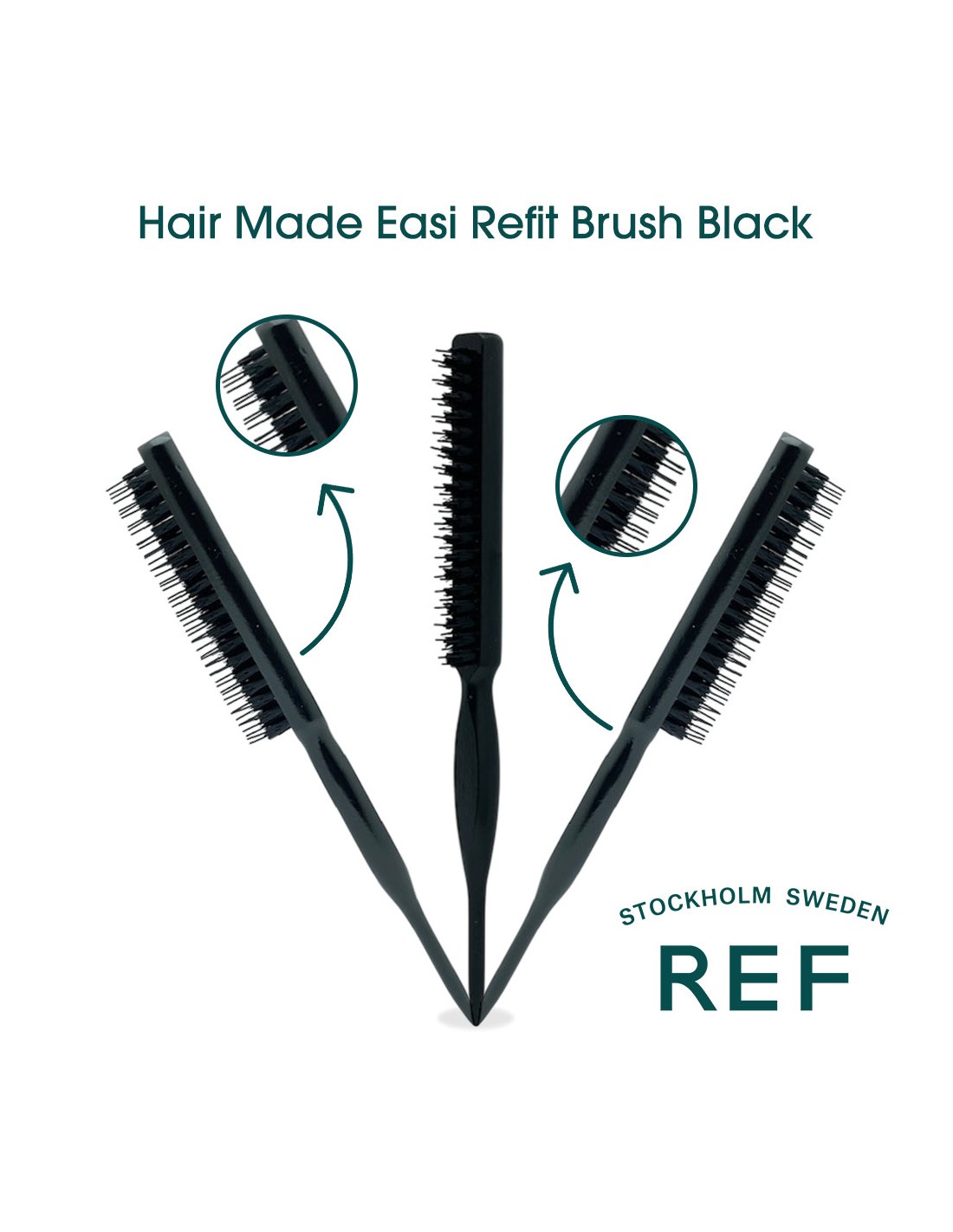 Effortlessly detangles and styles hair Ergonomic handle for comfortable grip and precise control Suitable for all hair types, especially thick or unruly hair The Hair Made Easi Refit Brush is designed to comb through the root area, providing a comfortable experience when removing hair extensions. Its double layered prongs make it easier to detangle knots and prevent tugging, while the ergonomic design ensures comfortable use and full control.