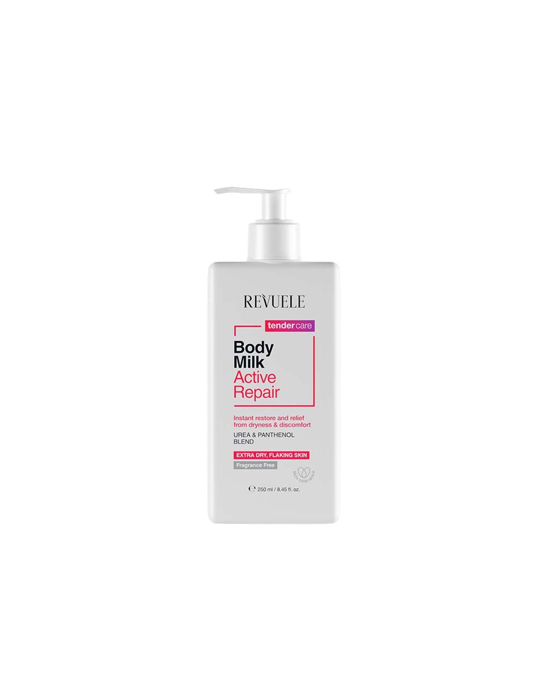The Revuele Tender Care Active Repair Body Milk is designed to provide intensive care and nourishment for the skin. Here are the key features and benefits of this product: