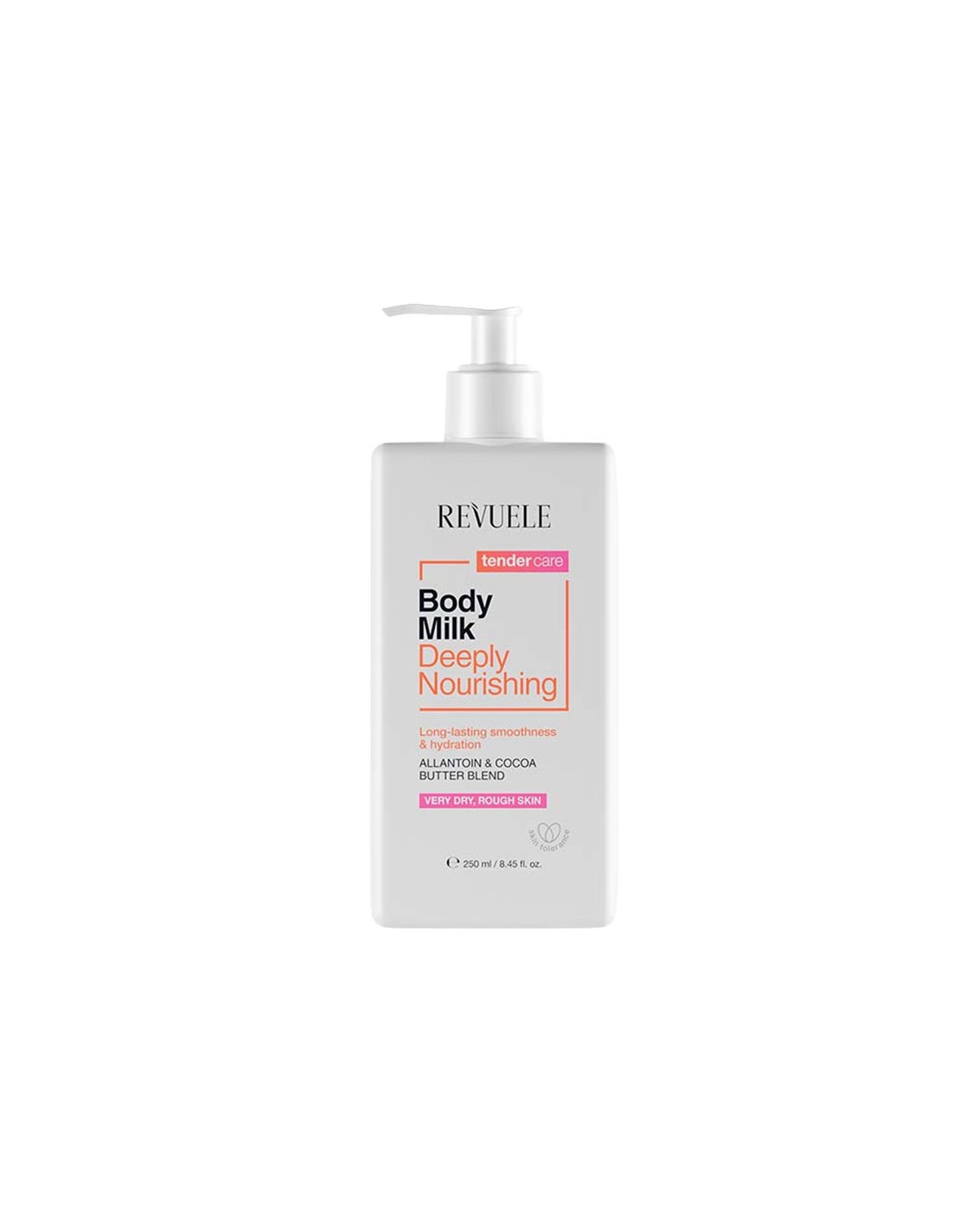 The Revuele Tender Care Deep Nourishing Body Milk is designed to offer intensive hydration and nourishment for the skin. Here are the key features and benefits of this product: