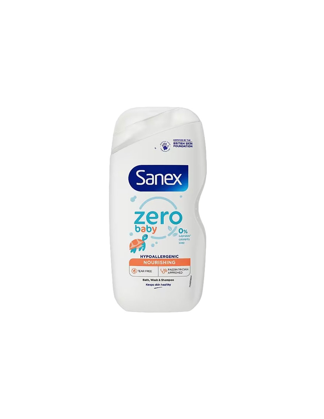 The Sanex Zero% Baby Nourishing Bath Wash and Shampoo is a gentle and hypoallergenic cleansing product designed specifically for the delicate skin and hair of babies. It is a multipurpose formula that serves as both a bath wash and shampoo, simplifying bath time routines for parents.