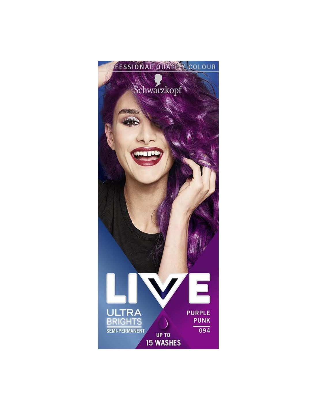 Purple lovers no more mixing purple with blue! LIVE Ultra Brights Or Pastel Purple Punk 094 gives you the chance to get a purple punk hair dye without the need to mix and match! A vegan formula suitable for dark blonde or bleached hair to achieve an intense purple hue or, if you prefer, a pastel shade of purple by adding conditioner.