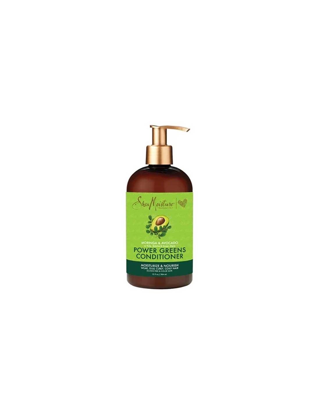 Power Greens Conditioner Moringa And Avocado. Healthy hair equals beautiful hair. Moisturize, detangle and soften with this nourishing conditioner to improve hair's manageability. Specially formulated with fair Trade Shea Butter and a blend of Moringa, Avocado, Kale, Matcha and Green Algae, this revitalizing formula delivers intense nourishment with 7x more shine, without weighing hair down. Unveil your hair's healthiest look yet. Shea Moisture hair products contain no silicone, sulfates, parabens, phthalates, mineral oil or petrolatum.How To Use: Apply to clean wet hair. Gently comb through from roots to end. Leave in for up to three minutes, then rinse. For best results, cleanse first with power greens shampoo and apply power green hair tea rinse.