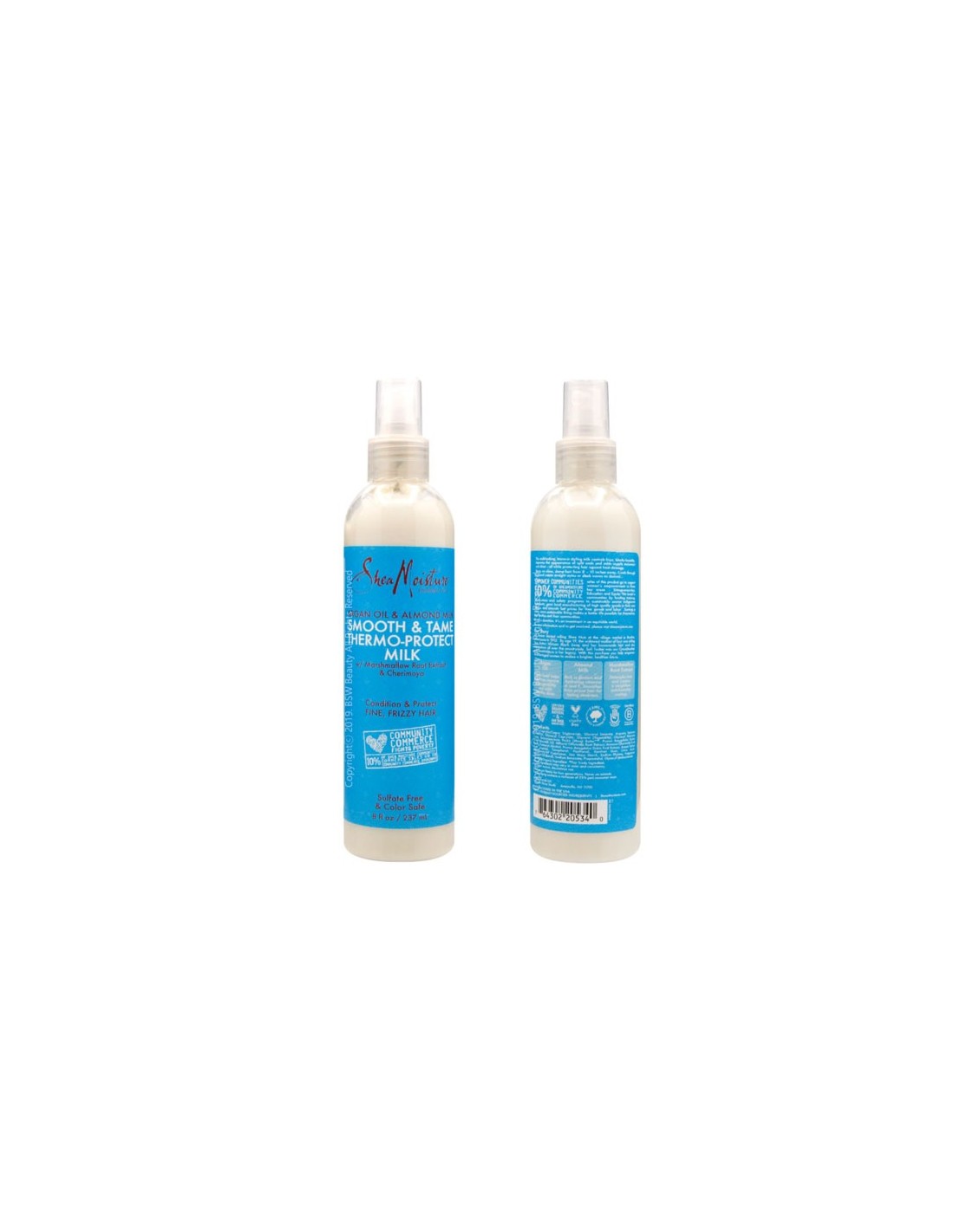 Shea Moisture's Argan Oil & Almond Milk Smooth & Tame Thermo-Protect Milk is a lightweight, deep conditioning masque that helps tame fine, frizzy hair without weighing it down. Argan Oil combines with Almond Milk to smooth and tame frizz, sealing hair cuticles against humidity, while softening, and adding luster.