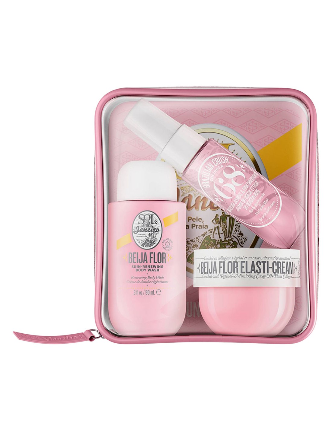 Indulge skin with a fusion of alluring floral accords with the Sol de Janeiro Beija Flor Jet Set. The travel-sized collection features the brand’s latest body cream, Beija Flor Elasti-Cream, alongside the matching body wash and body spray, each infused with the iconic Cherisoa 68 fragrance.