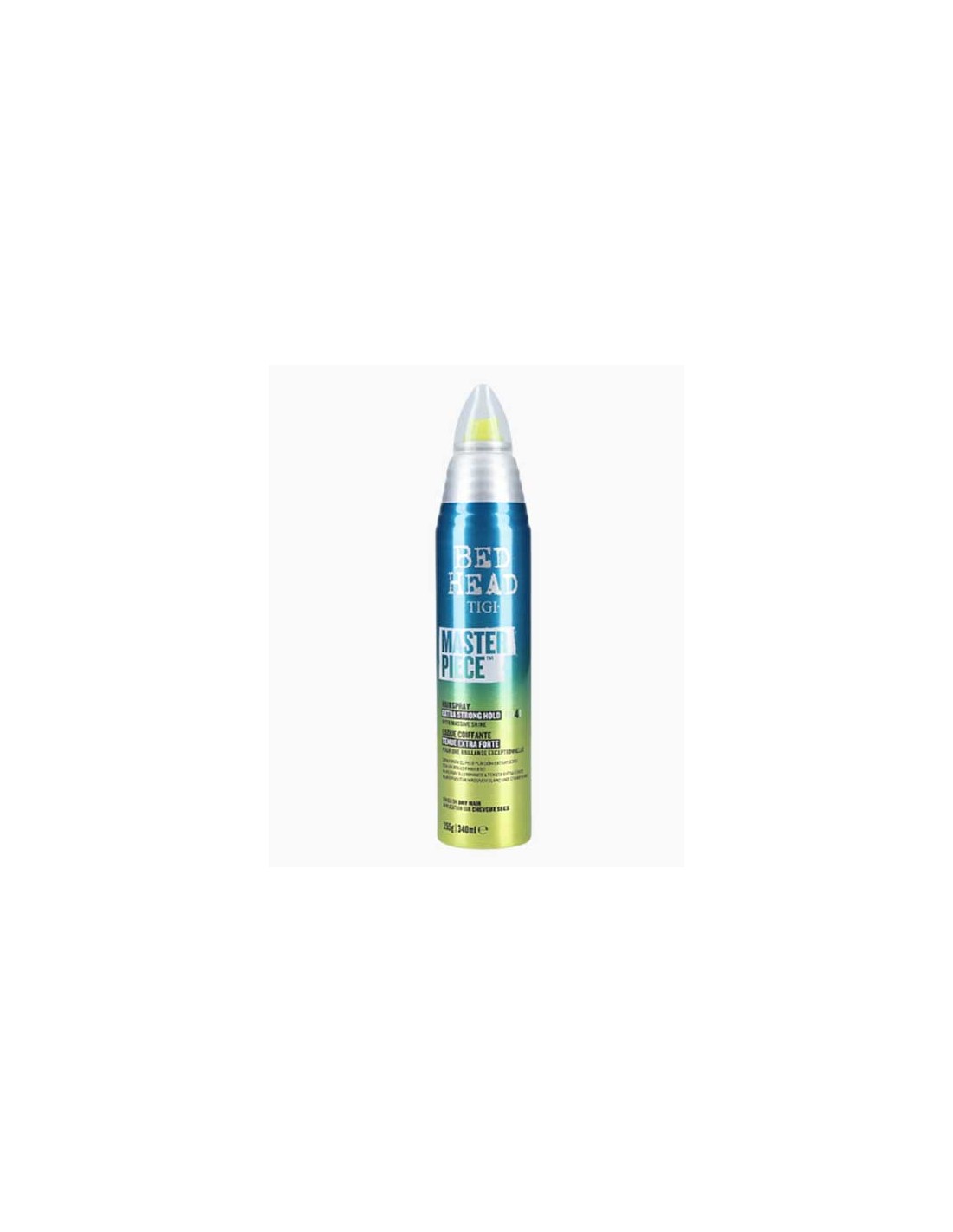 Bed Head’s MasterpieceTM Hairspray: A powerful shiny, strong hold formulation, not only designed with, but used by salon professionals. Delivering salon results and salon experience at home. With an extra strong hold and a shiny finish, the Bed Head MasterpieceTM Hairspray turns your hair into a work of art! This shiny hair spray adds gloss and shine for incredibly shiny hair.