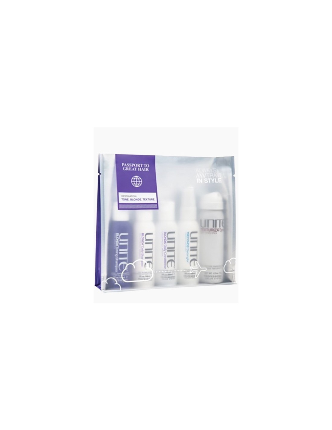 Add both to bagPassport to great hair. For: Tone BLONDE. TEXTURE. Always travel in style.