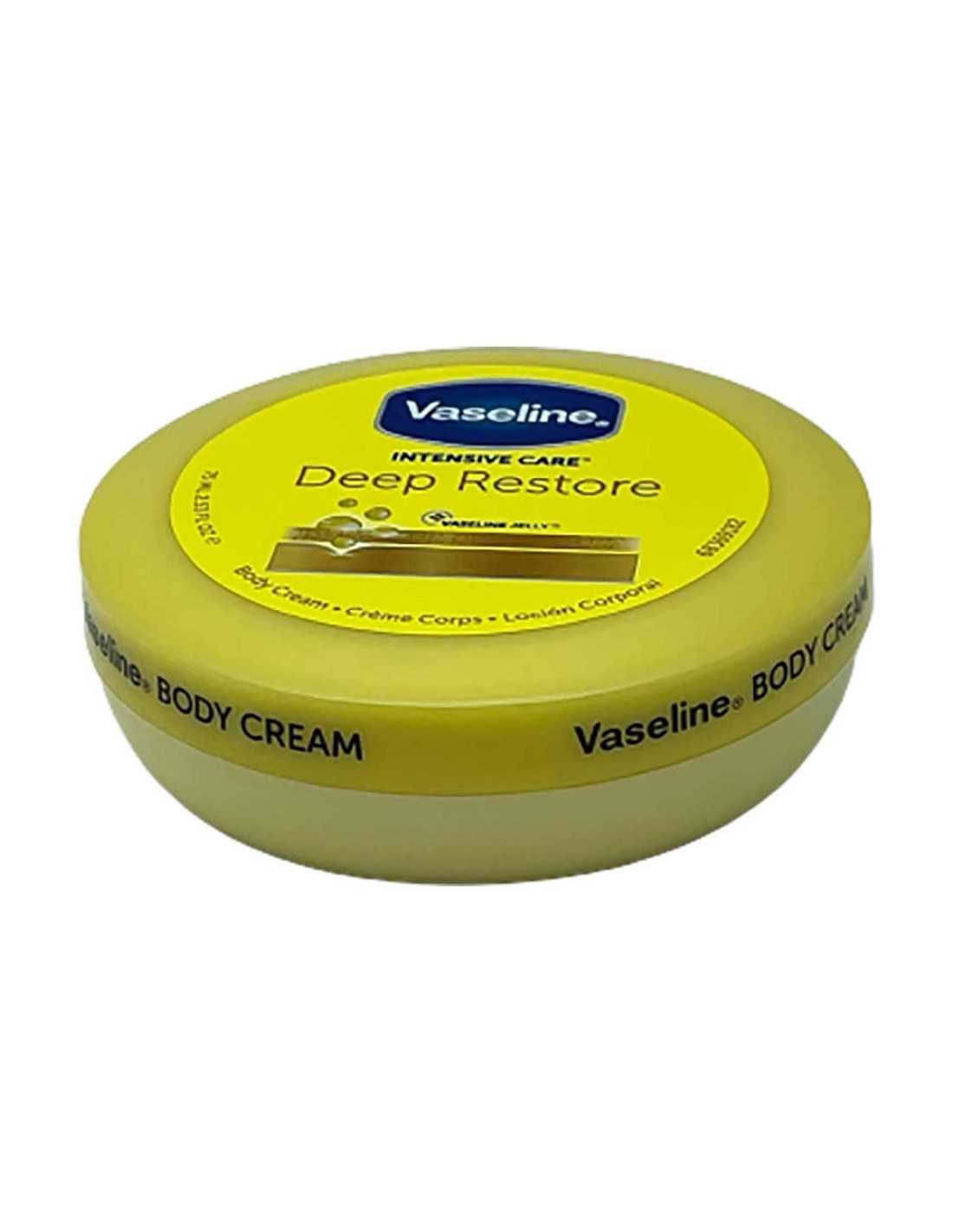 Vaseline Deep Restore Moisturizing Cream moisturizes the skin deeply, reduces dryness, and improves the skin texture, making it softer, healthier, and smoother. The deep restore formula locks in moisture for 24 hours long. It combats dryness, rejuvenating the dry skin's appearance into a glowing, healthy one. It is a non-greasy, fast-absorbing formula that replenishes dry skin. It can be used as a multi-purpose cream.