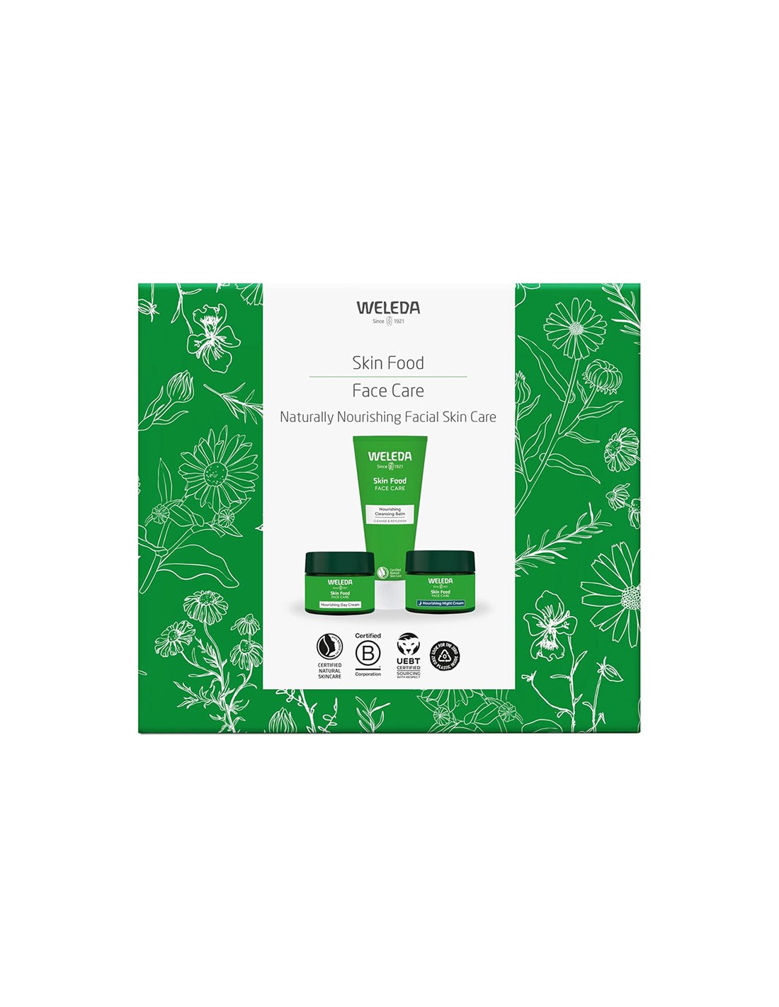 Weleda Skin Food Face Care Gift Set Inspired by the iconic Skin Food Original, the NEW Weleda Skin Food Face range is formulated for daily care, and blends beauty hero Skin Food’s naturally active botanicals with antioxidant-rich centella asiatica, sacha inchi oil and olive squalane, to intensely nourish and protect dry skin.