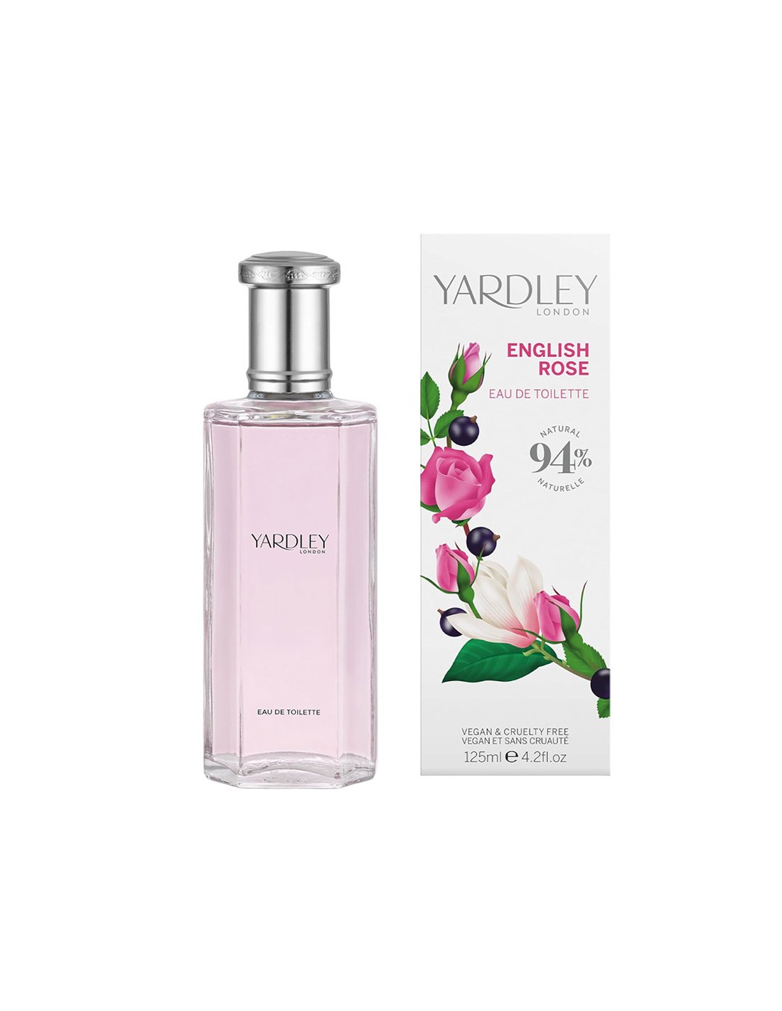 Yardley London's English Rose is a refreshing, light floral fragrance with sparkling citrus and rose top notes and a heart subtly combining rose bud, magnolia, violet and cassis with warm woody notes, whilst patchouli and musks add velvety tones to the base.